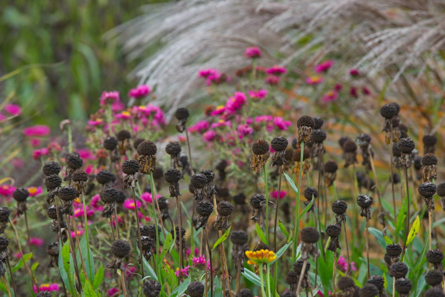 - Astern, Helenium, Samenstände, Garten der Horizonte