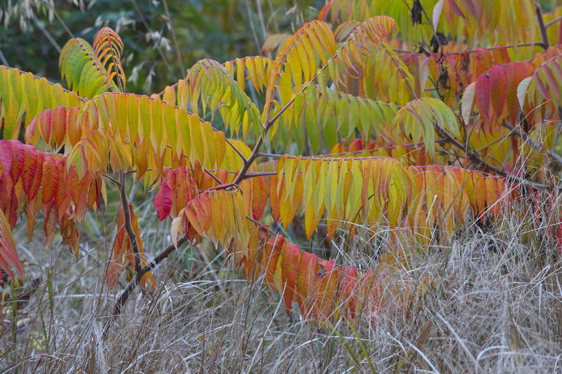 - Essigbaum, Herbstfärbung, Rhus, Calamagrostis brachytricha, Hyde Hall
