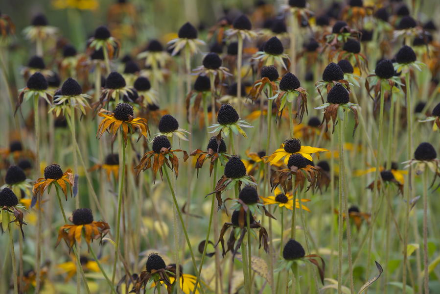 Samenstand, Rudbeckia, Coton Manor Gardens