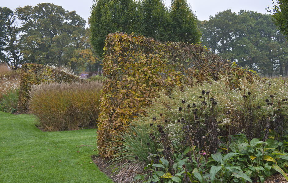 - Echinacea, Gräser, Hecke, Präriebeet, Samenstände, Sussex Prairie Gardens