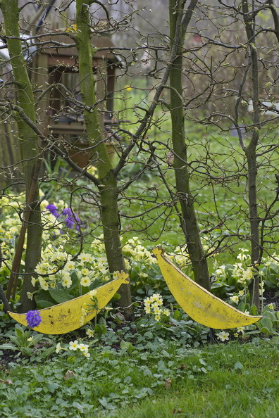 - Chalupka, Deko, Huhn, Primula denticulata, Primula veris, Schlüsselblume