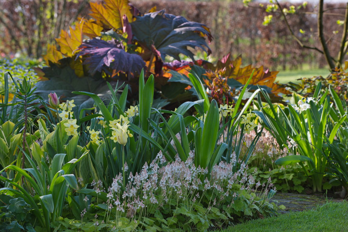 - Narcissus 'Pipit', Tiarella, Rheum palmatum var. tanguticum