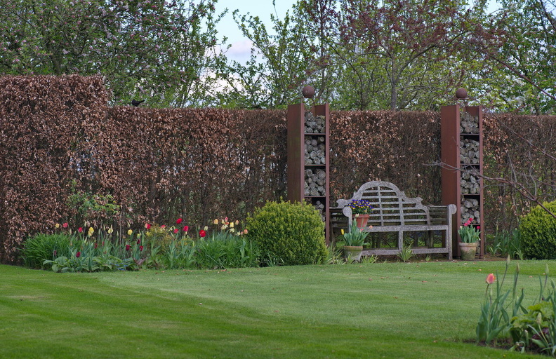 - Rasen, Tulpen, Wasserbecken, Sitzplatz