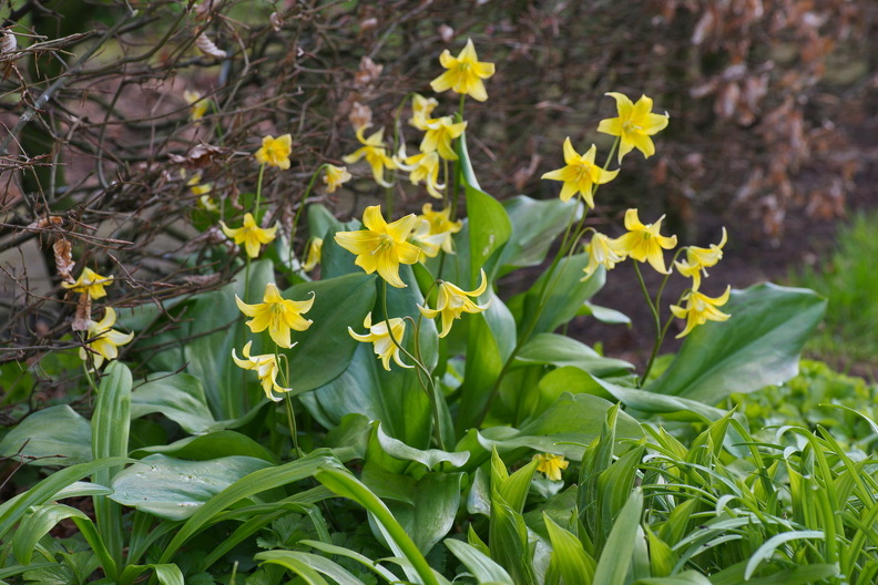 - Erythronium Hybride 'Pagoda', Forellenlilie, Hundszahn