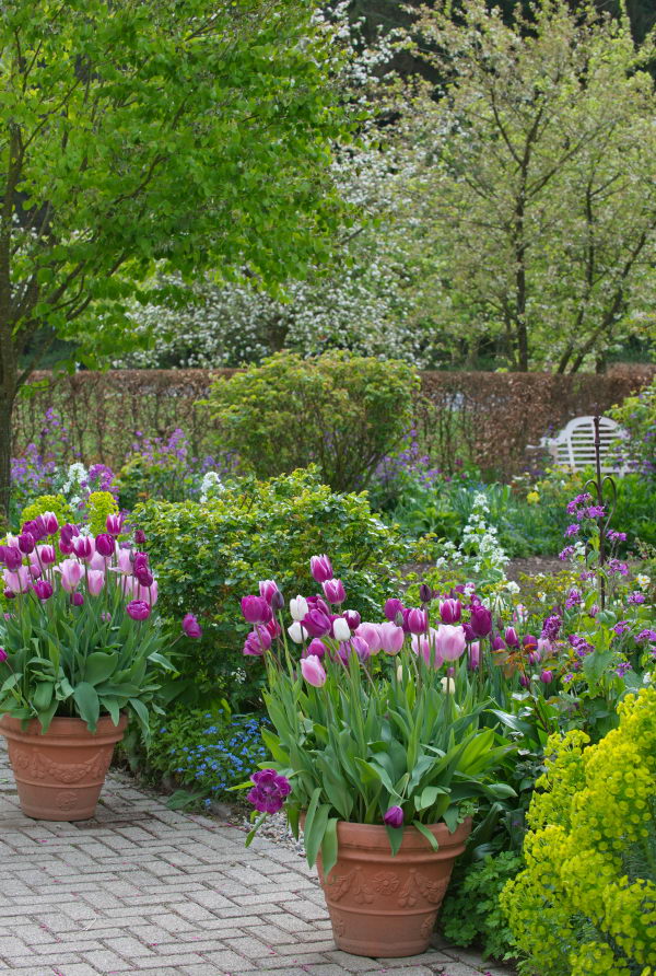 - Garten Elisabeth Imig und Silke Imig-Gerold, Lunaria, Tulpe 'Blue Diamond', Tulpe 'Candy Prince', Tulpe 'Negrita', Tulpe 'Purple Prince', Tulpe 'Shirley', Tulpe 'Synaeda Amor', Tulpe 'Synaeda Blue'