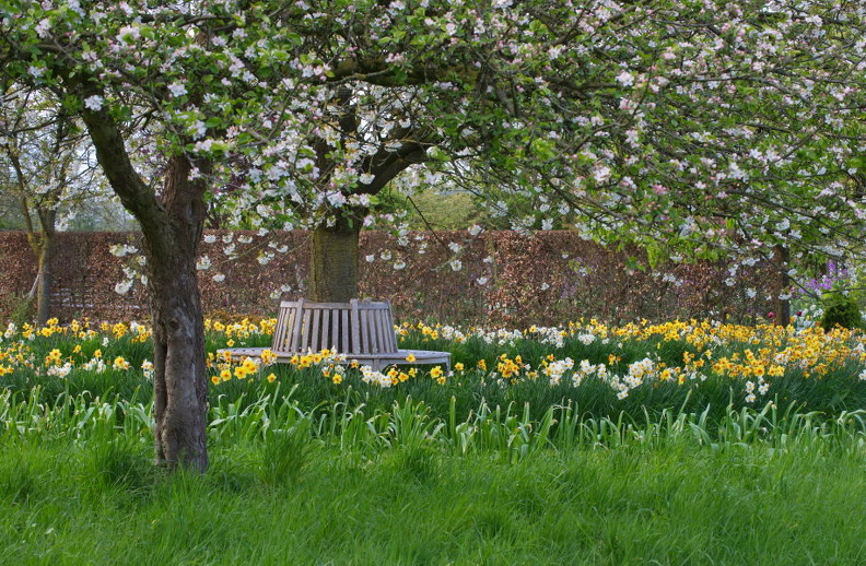 - Baumbank, Kirsche, Narzissen, Rundbank, Garten Elisabeth Imig und Silke Imig-Gerold