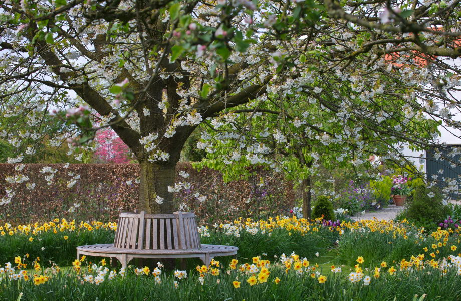 - Baumbank, Kirsche, Narzissen, Rundbank, Garten Elisabeth Imig und Silke Imig-Gerold