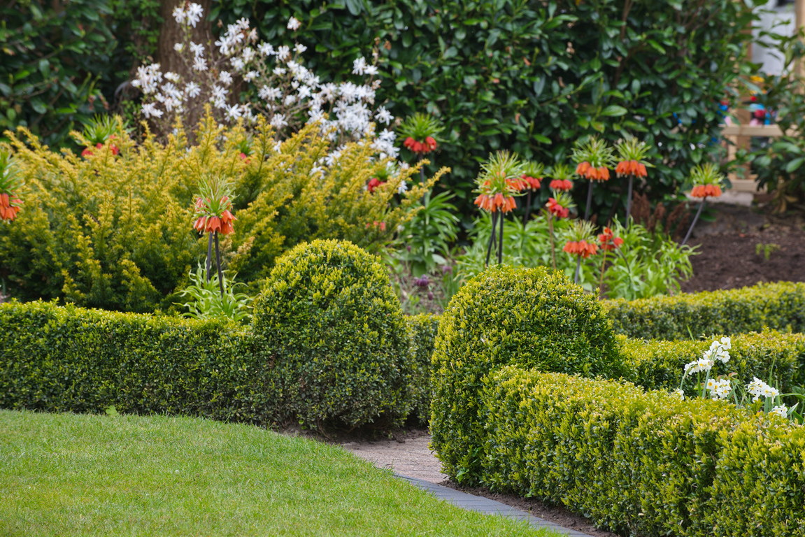 - Fritillaria 'Garland Star', Fritillaria 'Rubra', Magnolia stellata, Taxus baccata 'Semperaurea', Goldeibe