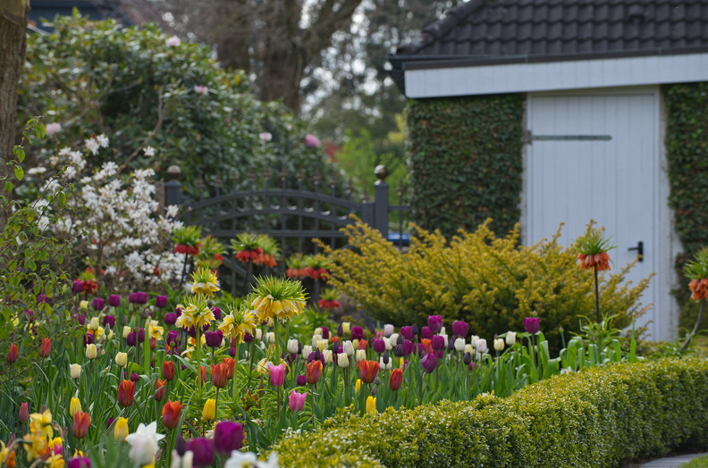 - Fritillaria 'Garland Star', Fritillaria 'Lutea', Fritillaria 'Rubra', Goldeibe, Taxus baccata 'Semperaurea', Tulpe 'Black Hero', Tulpe 'El Nino', Tulpe 'Mistress', Tulpe 'Negrita', Tulpe 'Queen of the Night', Tulpe 'Request', Tulpe 'Shirley', Tulpe 'Strong Gold', Hedera