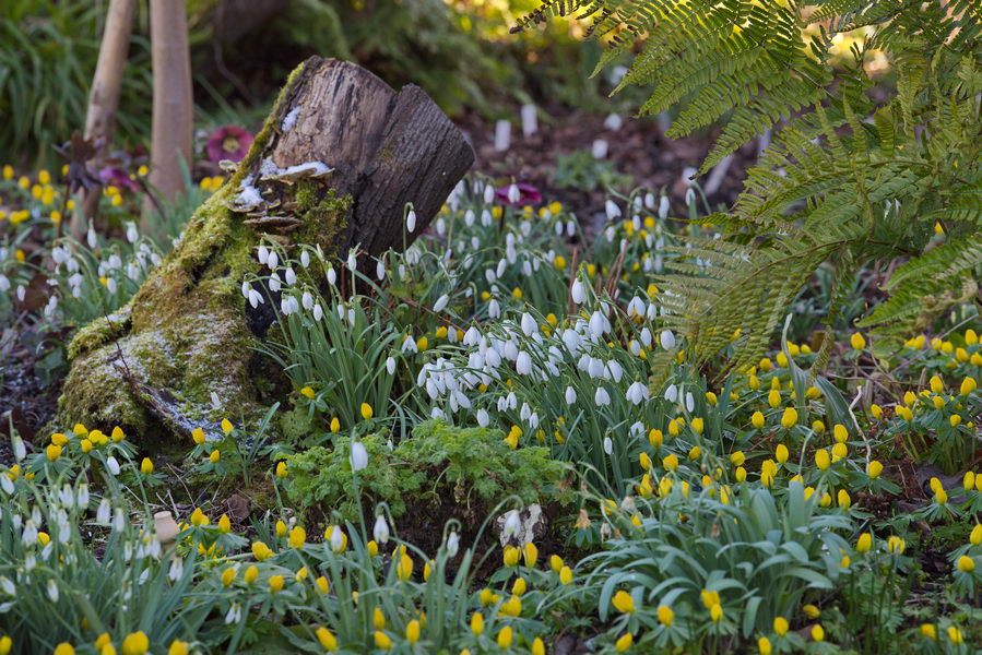 - Eranthis hyemalis, Galanthus 'Mrs Backhouse No 12', Garten Maier
