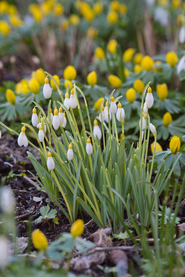 - Eranthis hyemalis, Galanthus 'Fiona's Gold', Garten Maier