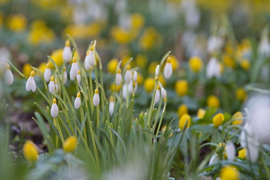 - Eranthis hyemalis, Galanthus 'Fiona's Gold', Garten Maier