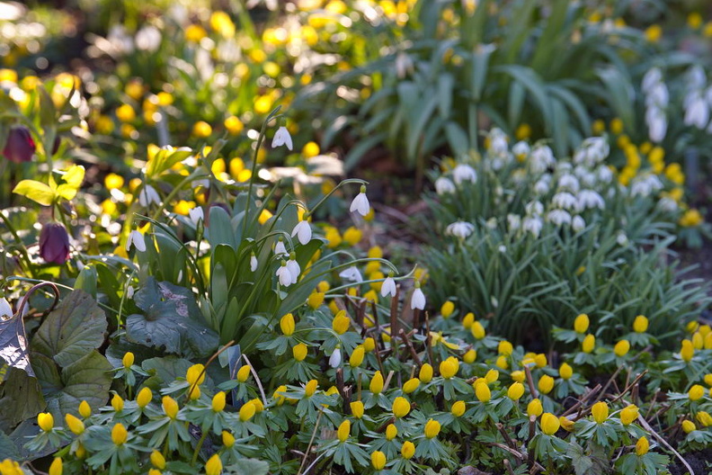 - Eranthis hyemalis, Garten Maier, Hamamelis