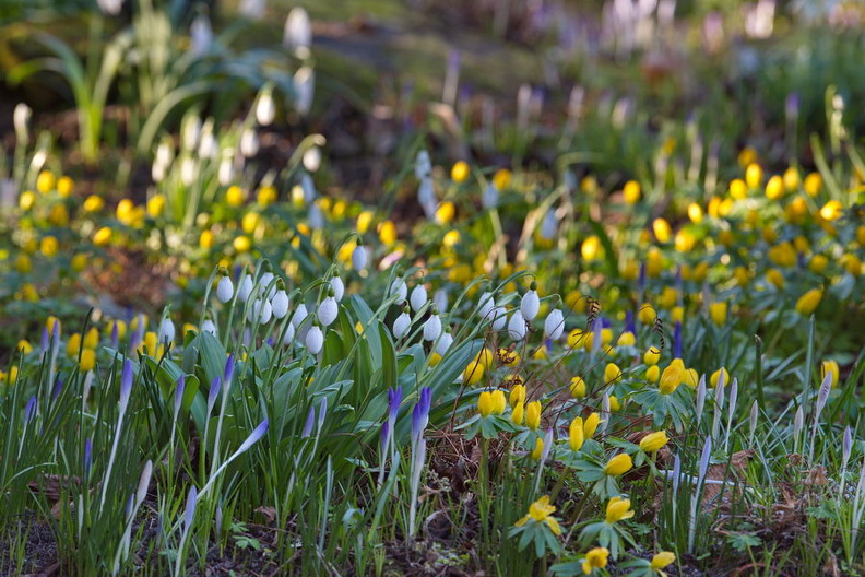 - Eranthis hyemalis, Galanthus plicatus 'Augustus', Garten Maier