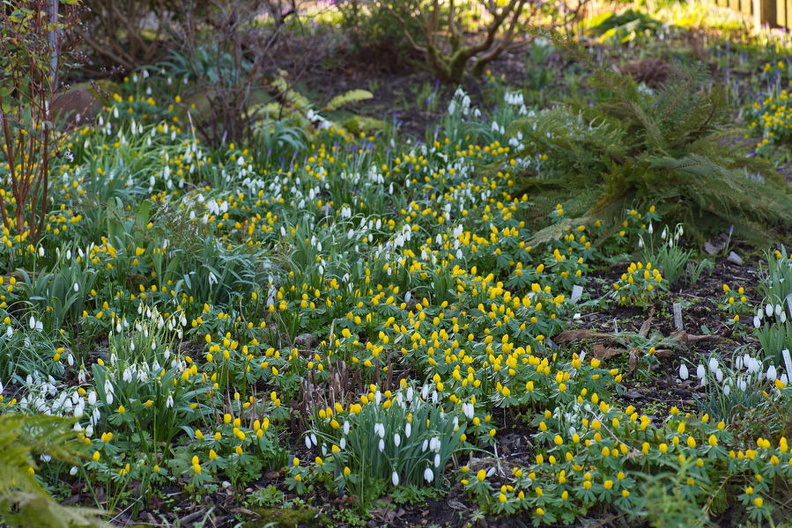 - Eranthis hyemalis, Garten Maier, Hamamelis