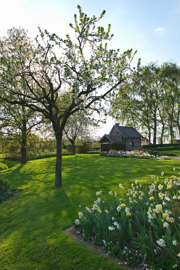 - Narzisse 'Stainless', Narzissen, Rasen, Tulpe 'Exotic Emperor'
