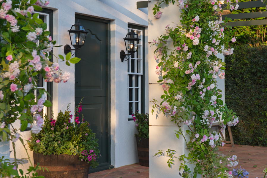 - Rose ‘Paul’s Himalayan Musk’, Agapanthus praecox, Chelsea Flower Show, The Trailfinders South African Wine Estate Garden