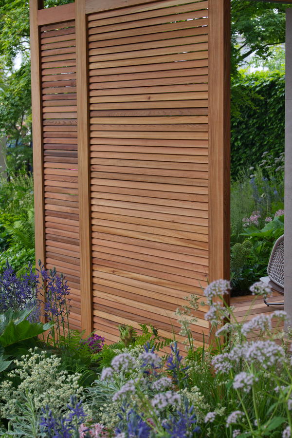 - Camassia leichtlinii ‘Maybelle’, Euphorbia characias 'Silver Swan', Sichtschutz, Morgan Stanley Garden, Chelsea Flower Show,-Design Chris Breadshaw