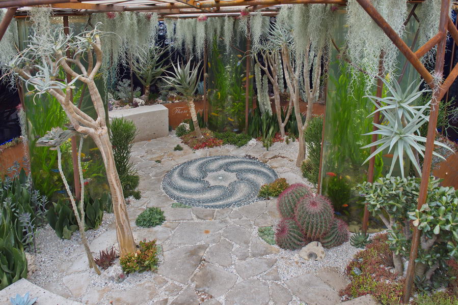 - Mosaik, trocken, Wüstenpflanzen, The Pearlfisher Garden,Designed by Karen Welman and John Warland, Chelsea Flower Show 2018