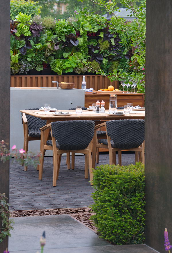 - Chelsea Flower Show 2018, Designer: Tony Woods, Gartenküche, modern, Sitzplatz, Urban Flow garden, vertikaler Garten