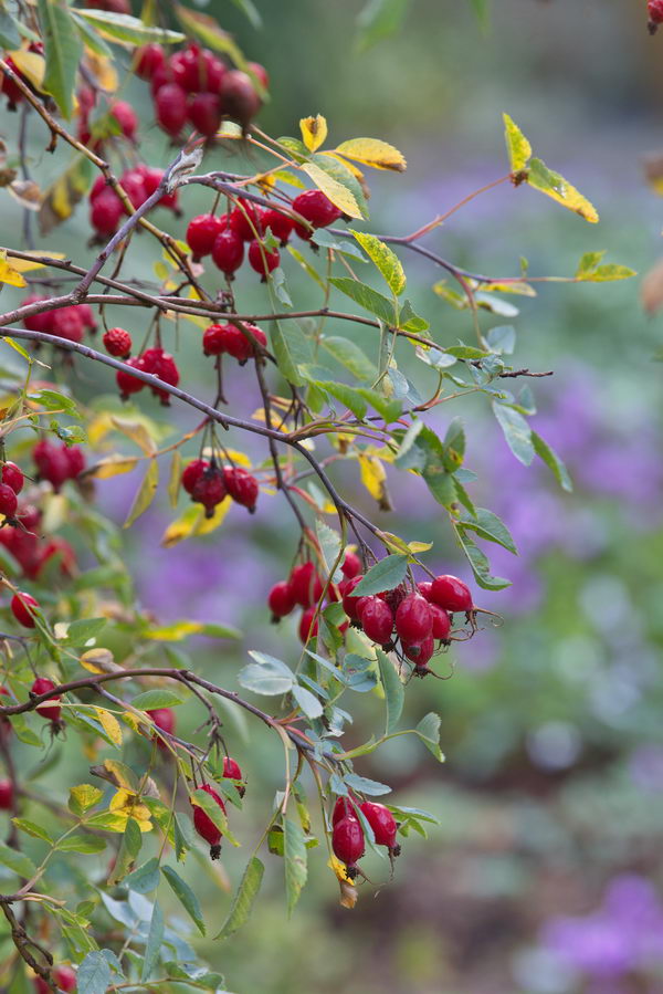 - Copton Ash, Hagebutten, Rosa glauca, Tim und Gillian Ingram