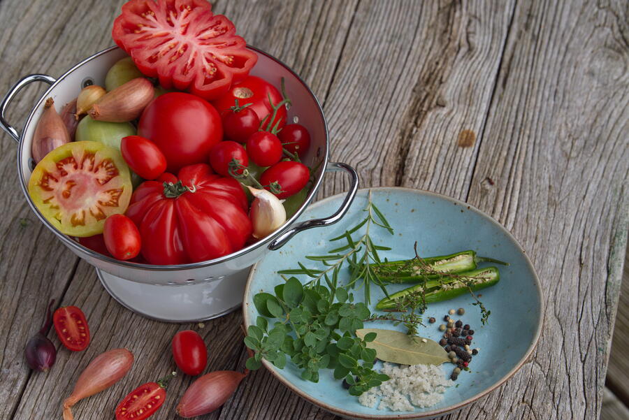 - Buschtomate, Coctailtomaten, DIY, Fleischtomate, Romanatomate, Tomate 'Coeur de Boeuf', Tomate 'Marmande', Tomate 'Ochsenherz', Tomaten, Tomatenconsomme, kochen, Food