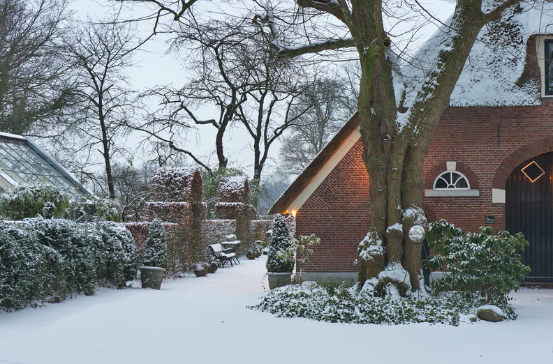 - Bauernhaus, Garten Erve Odinc, Reetdach, Schnee