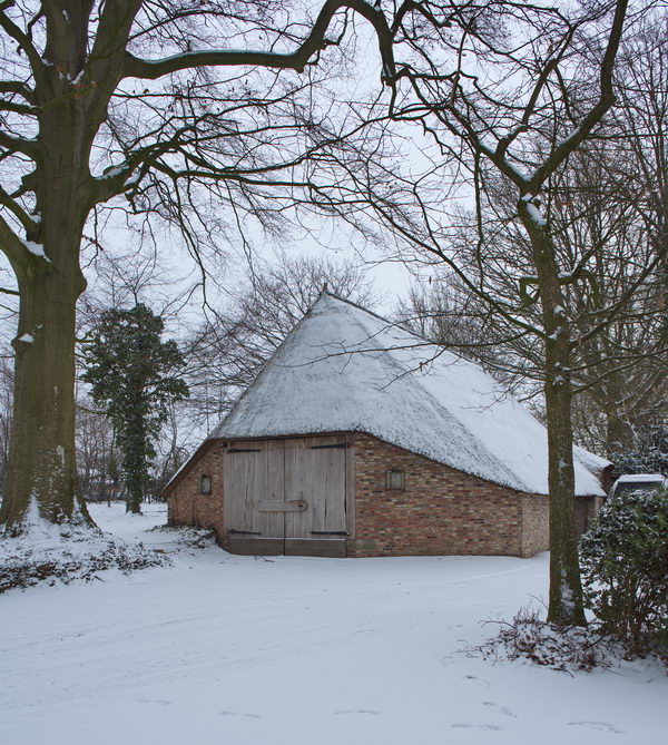 - Garten Erve Odinc, Reetdach, Scheune, Schnee