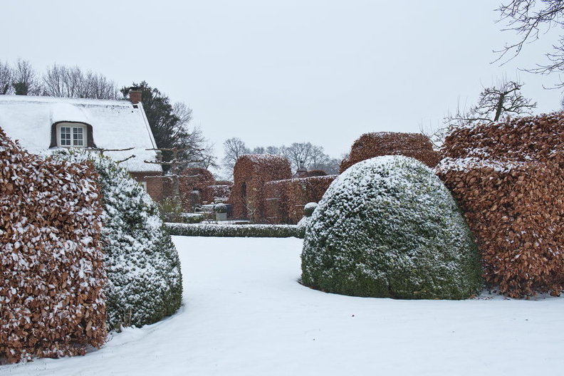 - Garten Erve Odinc, Reetdach, Scheune, Schnee