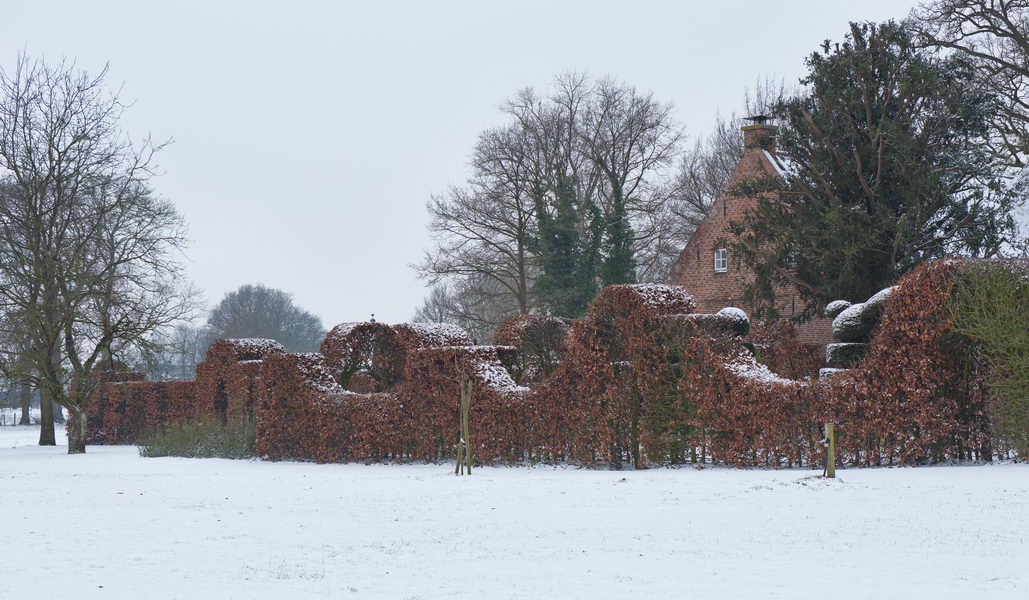 - Bogen, Fagus sylvatica, Schnee, Garten Erve Odinc
