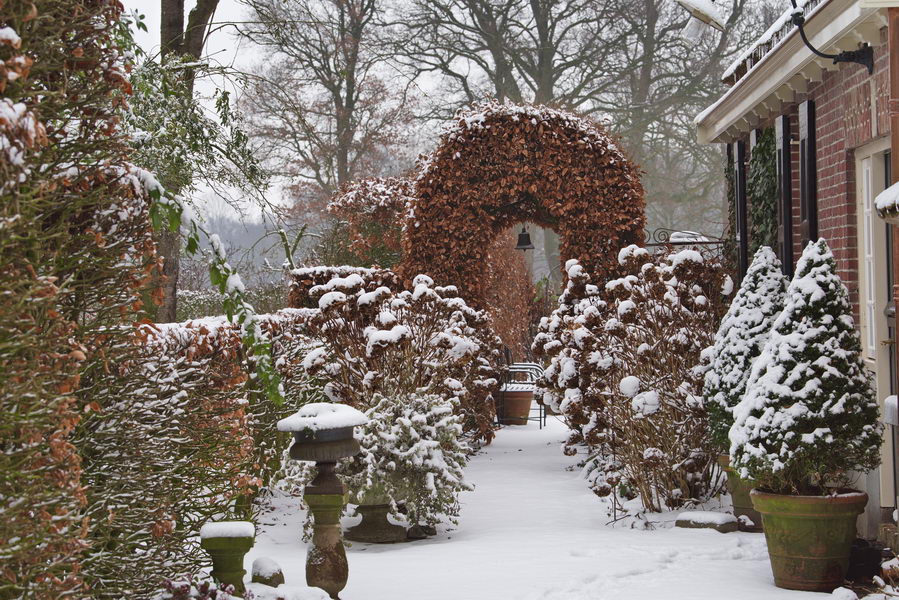 - Bogen, Fagus sylvatica, Schnee, Garten Erve Odinc