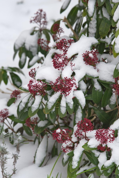 - Garten Erve Odinc, Schnee, Skimmia japonica