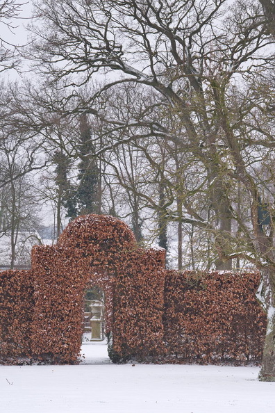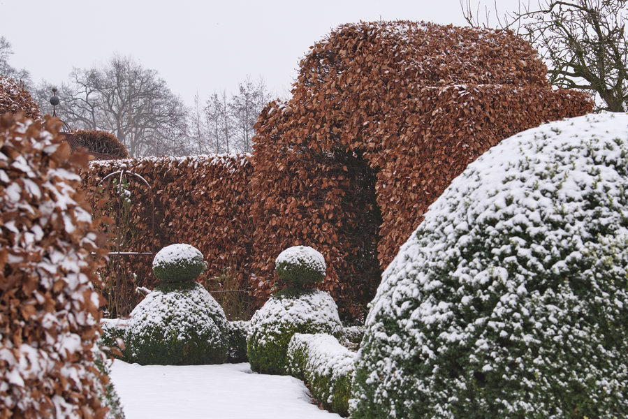 - Bogen, Fagus sylvatica, Schnee, Garten Erve Odinc