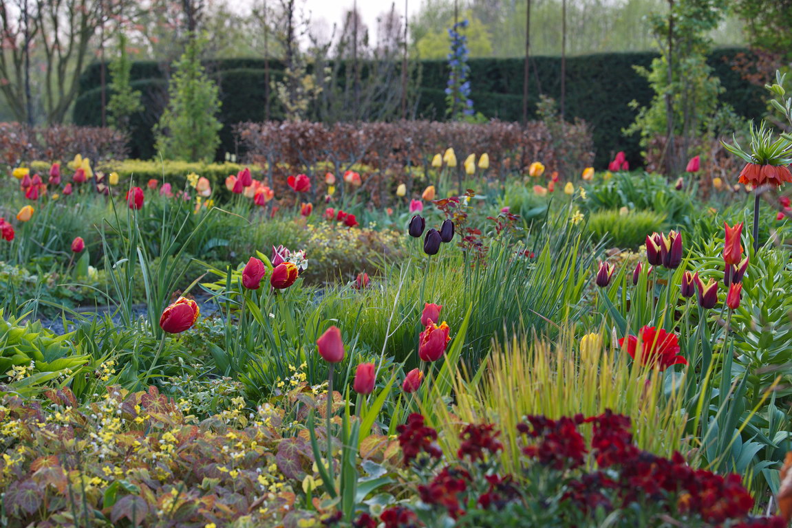 - Erysimum cheiri, Fritillaria imperialis, Tulpe 'Ballerina', Tulpe 'Negrita', Tulpen