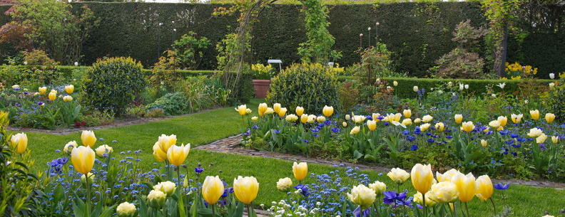 - Anemone coronaria 'Mr. Fokker', Myosotis, gelb, Garten van Baalen