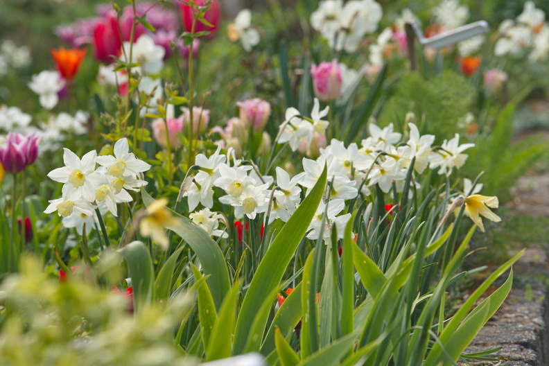 - Garten Verschuur, Tulpe 'Pink Impression', Tulpe 'Purissima', Tulpe 'Purple Rain', Tulpe 'Rem's Favourite', Tulpe 'Slawa', Garten Les Deesses Vertes