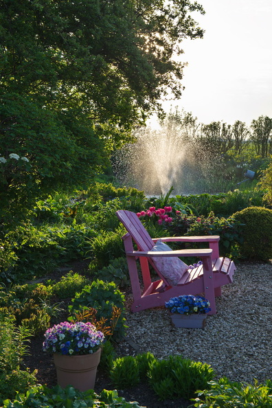 - Adirondack Chair, pink, Sitzplatz, Teich