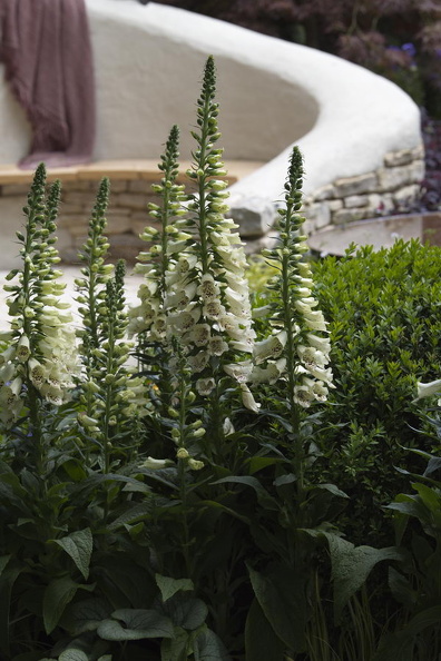 - Digitalis purpurea 'Alba', Mauer, rund, Chelsea Flower Show