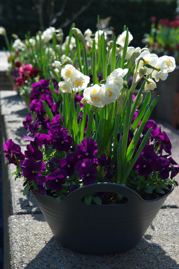 Blumentopf, Narzisse, Veilchen