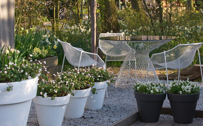 - weiß, Sichtschutz, Blumentopf, Vorhang, Drahtstühle, Keukenhof