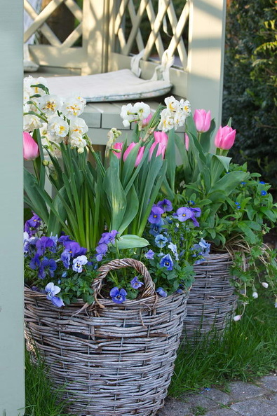 - Blumentopf, Drahtstühle, weiß, Keukenhof