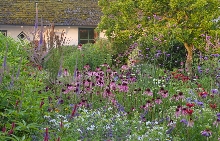 - Allium sphaerocephalon, Echinacea pallida, Monarda fistulosa 'Jacob Cline', Nepeta x faassenii 'Walker's Low', Verbena bonariensis, Veronicastrum virginicum 'Fascination'