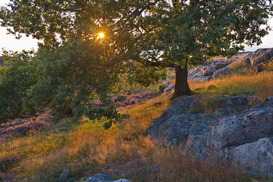 - Bornholm, Eiche, Felsen, Sonnenuntergang