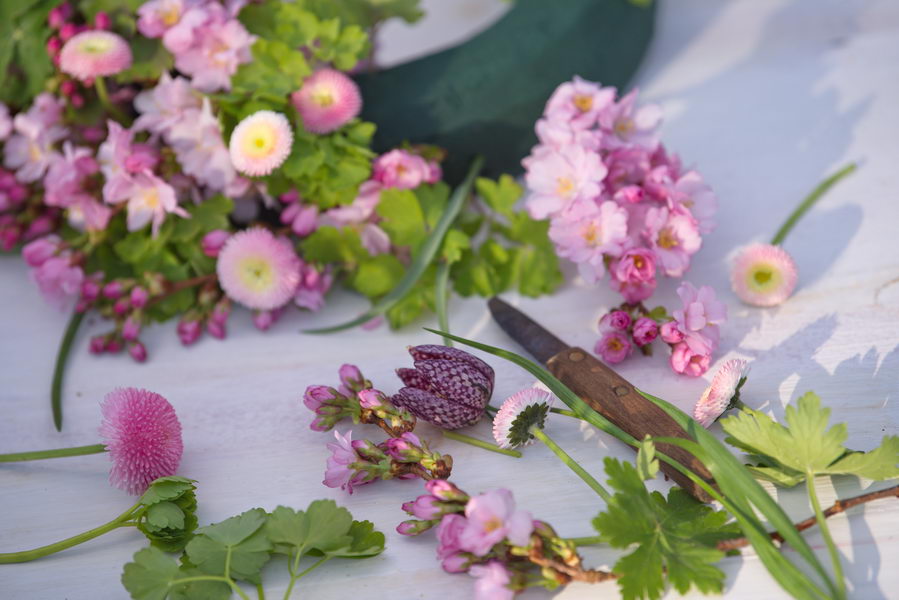 - Bellis, DIY, Kranz, Zierkirsche, Fritillaria meleagris