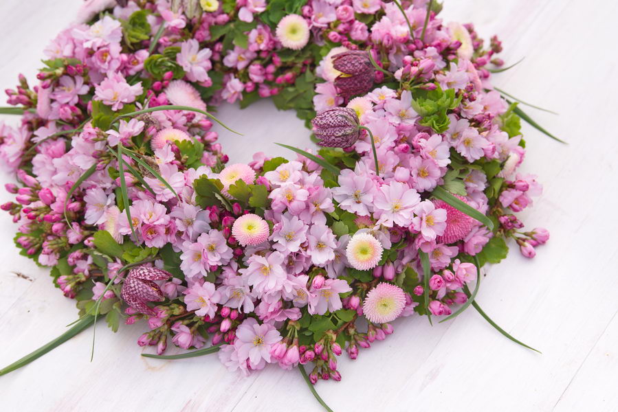 - Bellis, DIY, Fritillaria meleagris, Kranz, Zierkirsche