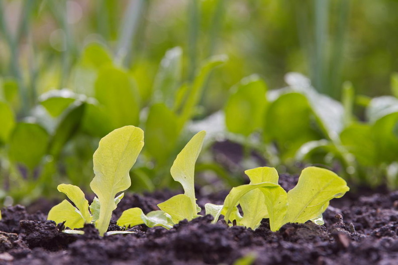 - Gemüsegarten, Mischkultur, Salat, Spinat, Zwiebeln