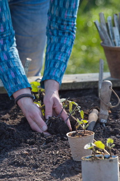 - Bohnen, Buschbohne 'Purple Teepee', Gartenarbeit, Gemüsegarten, Hochbeet, Jungpflanzen, pflanzen