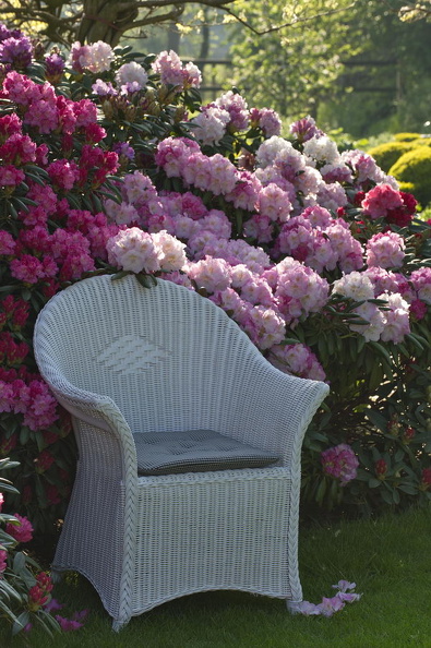 - Deckchair, Liege, Rhododendron, Schlitzahorn, weiß