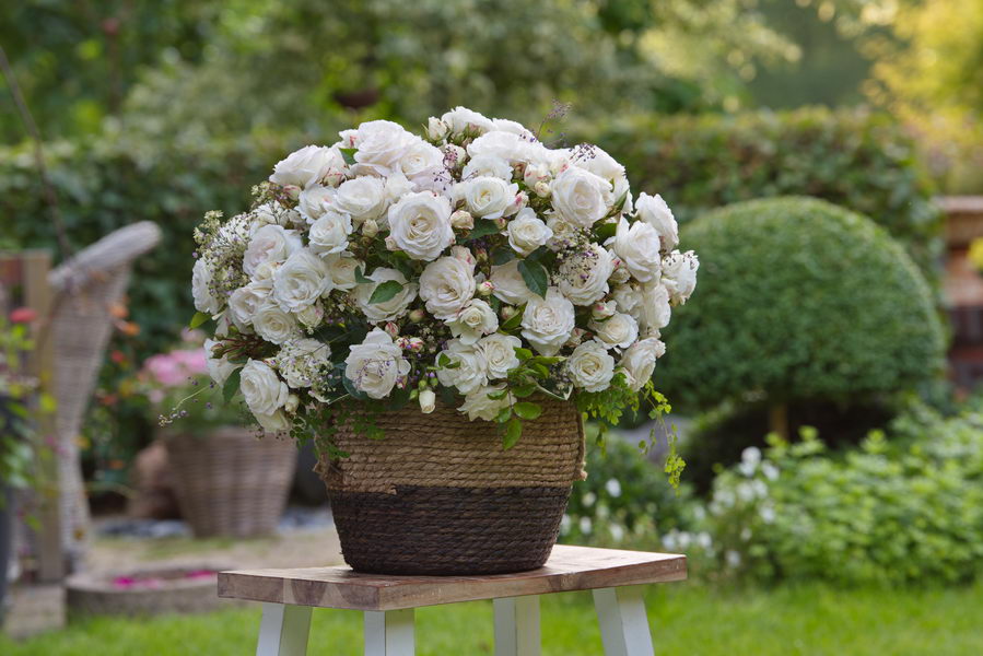 - Beetrose, Rose 'Baby Schneewittchen', Strauß