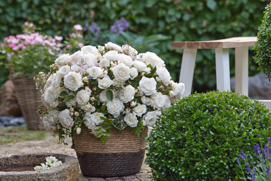- Beetrose, Rose 'Baby Schneewittchen', Strauß